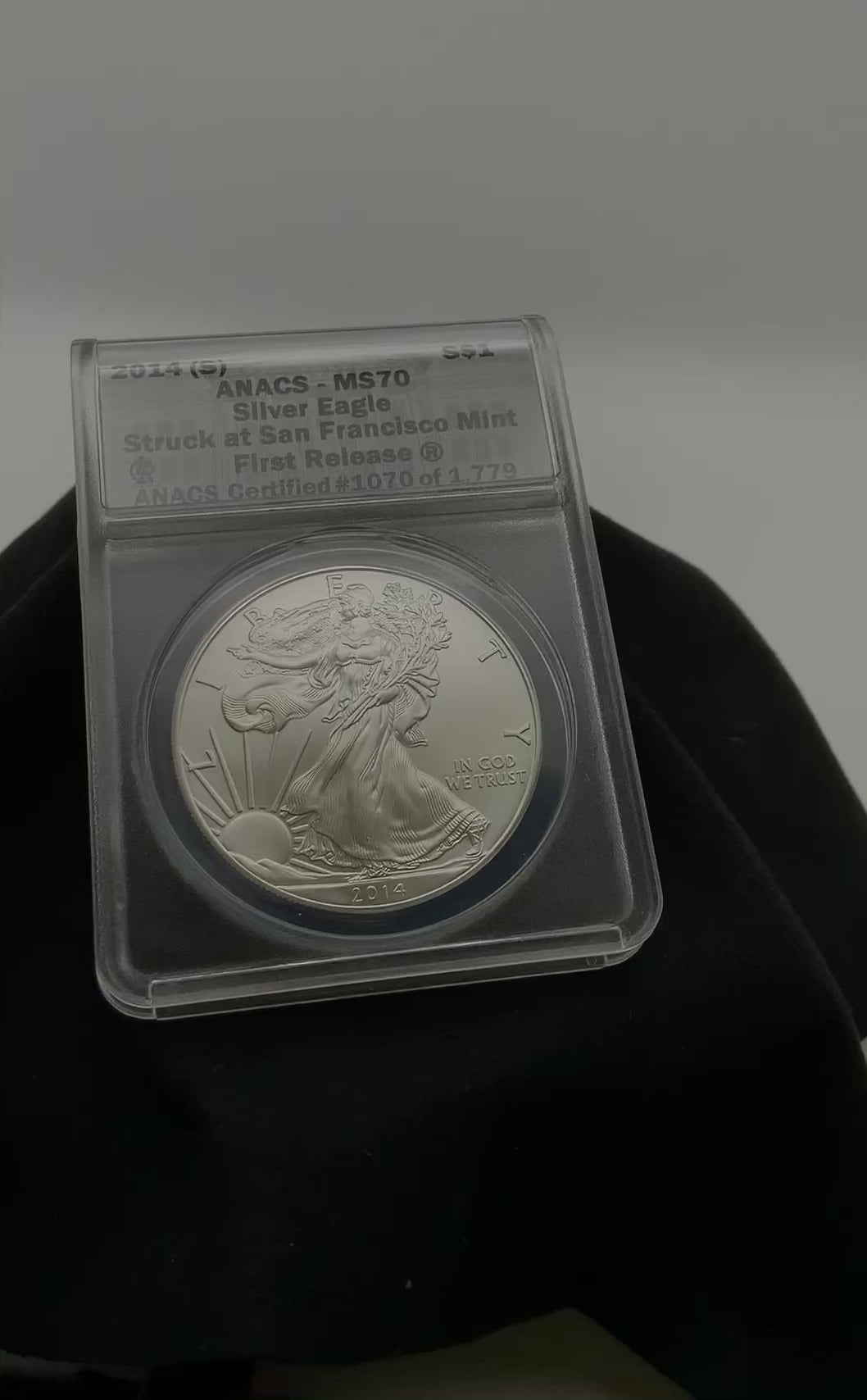2014 (S) AMERICAN SILVER EAGLE ANACS MS70 FR STRUCK AT THE SAN FRANCISCO MINT